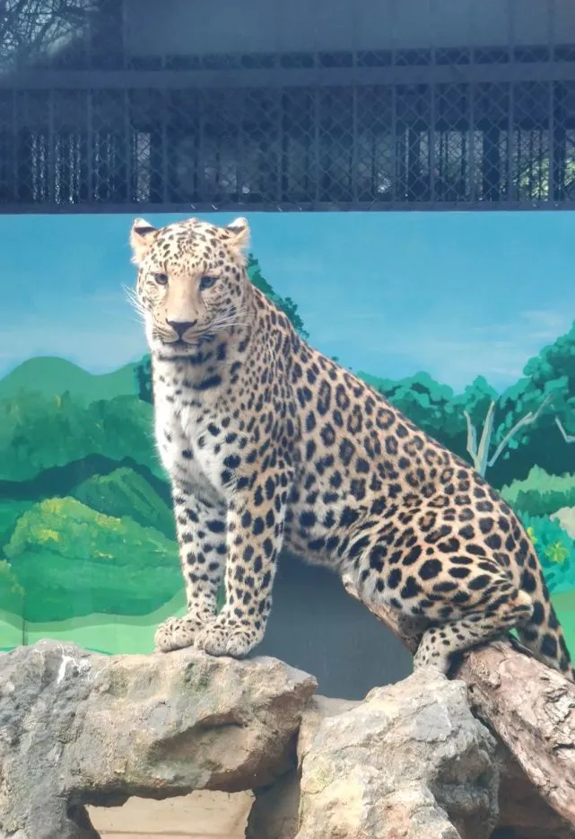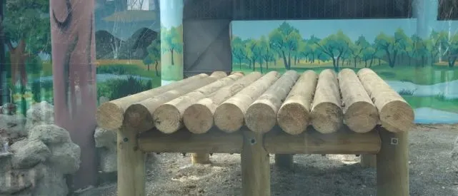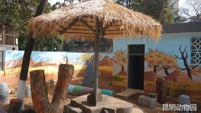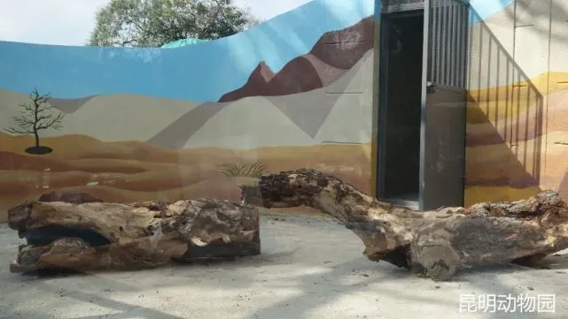 这次的新场馆不但模拟动物的生境做了墙面彩绘,还布置了很多丰容设施。