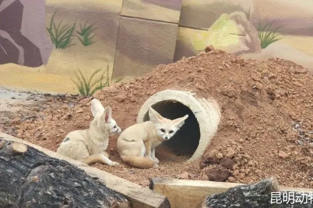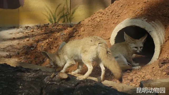 躺倒的树干让环境更加自然,耳廓狐也很喜欢在中空的树干通道里面钻来钻去。