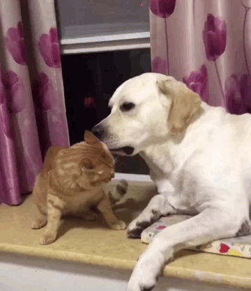最后看一下对动物的态度。 拉布拉多不仅对人态度好,对动物的态度也很好。面对比它体型大的动物,能好好相处就会好好相处,不能的也不会随便动手,而面对比它体型小很多的动物,它不但不会上前攻击它们,有些时候就会被它们吓到夹尾巴逃跑,对动物并没有攻击性。