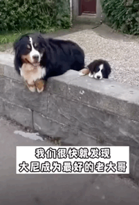 两只小家伙的第一次见面,相当顺利,小狗还拥有了自己的名字:小尼。 然后,网友发现每天等待自己回家的身影又多了一个,小尼的个头太小,站起来也才勉强露个头的程度。