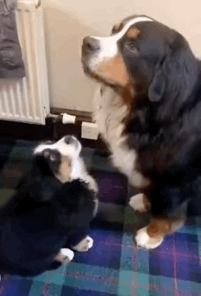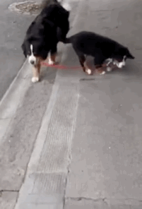 于是,他打算再养一只狗…… 还选了一只缩小版的大尼! 当大尼见到跟自己一模一样的小老弟时,开心得尾巴都摇成螺旋桨了: “嘿!以后我来罩着你哇!”