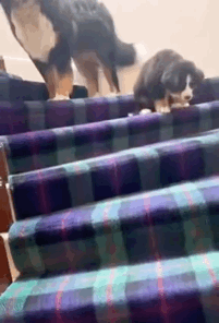 大尼也总是默默守护着弟弟,怕它小短腿下楼摔倒