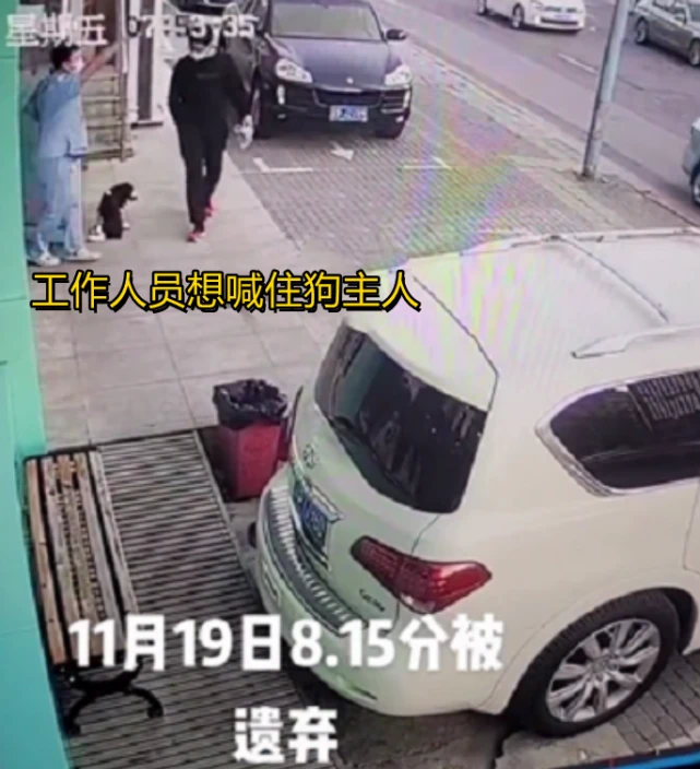 11月19日,八点十五分左右,停靠在路边的出租车里走下来一名年轻女子,只见她抱着狗慌慌忙忙站到宠物医院门口,随后将狗放下转身离开现场。 狗狗拼命追赶,拖着有伤的腿部,只折腾了一会,最后也没赶上主人的步伐,只能眼睁睁看着主人狠心离开的背影。 宠物医院里的工作人员反应过来时,狗主人已经乘着出租车离开了。