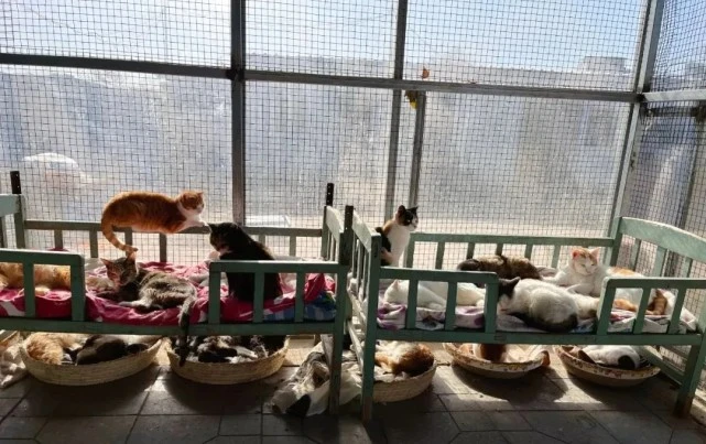 小院里有很大的一间是流浪猫的宿舍。 我曾以为,这些受到过人类伤害、被人类所遗弃的猫咪,也许会有很强的防备心,可是并没有。 图片