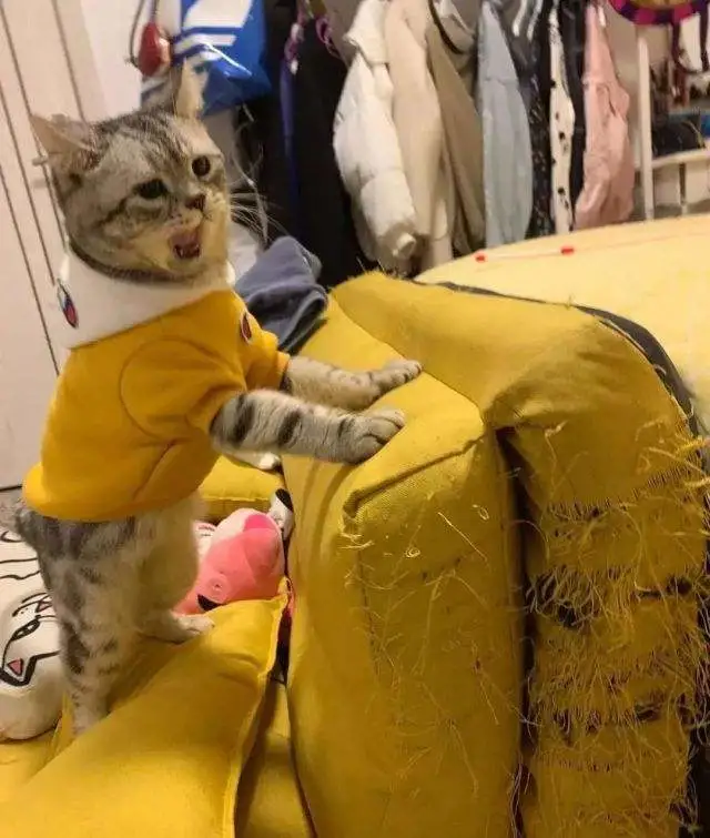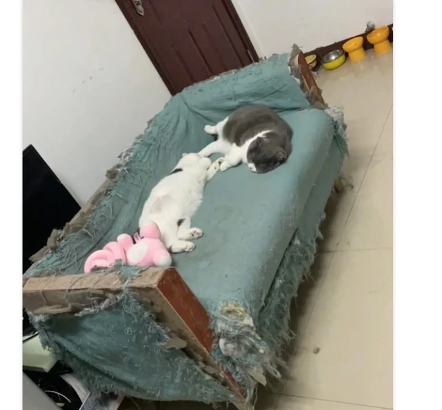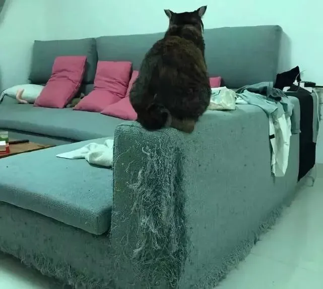在网上看到一个帖子。 一网友搬了新家,本来已经考虑到家里养猫,所以买了一套便宜点的沙发。 本想着,无论猫咪怎么抓挠,它们也不可能那么快就将沙发抓坏。 可是,当沙发来到了家里,猫咪的破坏力着实让铲屎官悲伤无奈。 沙发刚到家的时候,干净整洁,看上去很有格调;可没过多久,沙发就变了一个样。
