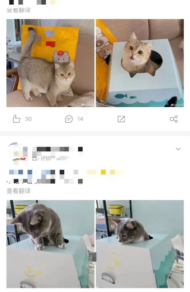 为什么大家都有!猫奴的心情谁懂!|图源网络 不过,猫猫到底为什么这么喜欢纸箱子啊!花高价钱买来的猫窝,猫主子可能并不喜欢,非要霸占着破破烂烂的快递纸箱。 因为对于一只猫猫来说,纸箱子可能不止是一只纸箱子这么简单。 压力山大?我想钻进纸箱里静静 猫猫喜欢钻纸箱?这件事早就被研究人员们盯上了。 2014年,研究者在荷兰的一家猫猫收容所中观察了19只新入所的欧洲短毛猫。一般来说,当流浪猫被收容为“新猫”后,压力水平都会增加。 研究人员将19只猫随机分为两组,为其中一组猫猫提供了隐蔽的纸箱。同时也通过压力量表和动物行为观察它们的压力。 研究发现,有纸箱子可以钻的猫猫压力更低。而且当它们感到有较大压力时,钻进纸箱能够更快地降低压力。不过,没有箱子的猫猫们也没有自暴自弃,而是给自己找到了新的庇护所,试图躲在垃圾盆和别的盒子状物体后面。