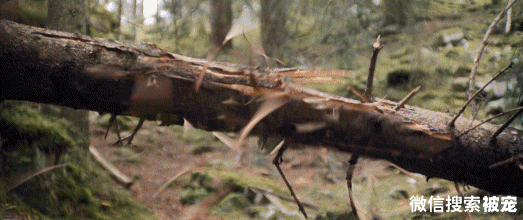 瞬间有点武侠片内味 两人之间的张力不断积聚,直到一旁巨大的树干忽然拦腰截断。