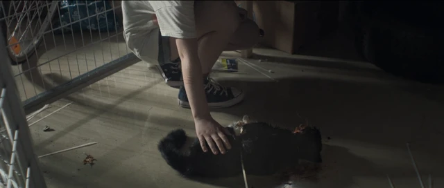 那正好,高度够了。 本杰明轻轻将小猫托举起来,瞄准好楼梯的口。 松手。 他俩等了几秒听不见什么声响,便飞速跑下去探探情况。 小猫躺在地上,一动不动了。 本杰明突然伤心得掉眼泪:你觉得它死了吗?