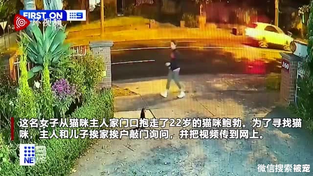 恶劣!澳大利亚一名女子被拍到偷走22岁宠物猫 据澳大利亚第9新闻12月9日报道,澳大利亚墨尔本一名女子12月1日晚被拍到偷走了一只宠物猫,猫的主人伤心欲绝希望它能被送回来。 视频中的这名女子从猫咪主人家门口抱走了22岁的猫咪鲍勃。为了寻找猫咪,主人朱塞皮娜·罗伯茨(Giuseppina Roberts)和儿子挨家挨户敲门询问,并把视频传到网上。