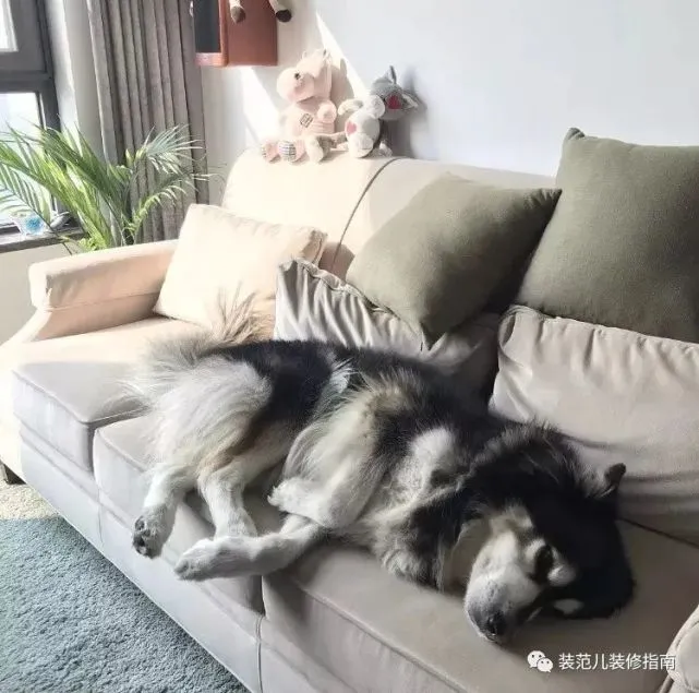 ▲养了它之后就再也没有躺过沙发。 要解决整个问题,就应该在柜规划的时候将人的动线和宠物的动线分开。格子规划舒适的活动空间,包括独立玩耍和休息的空间。