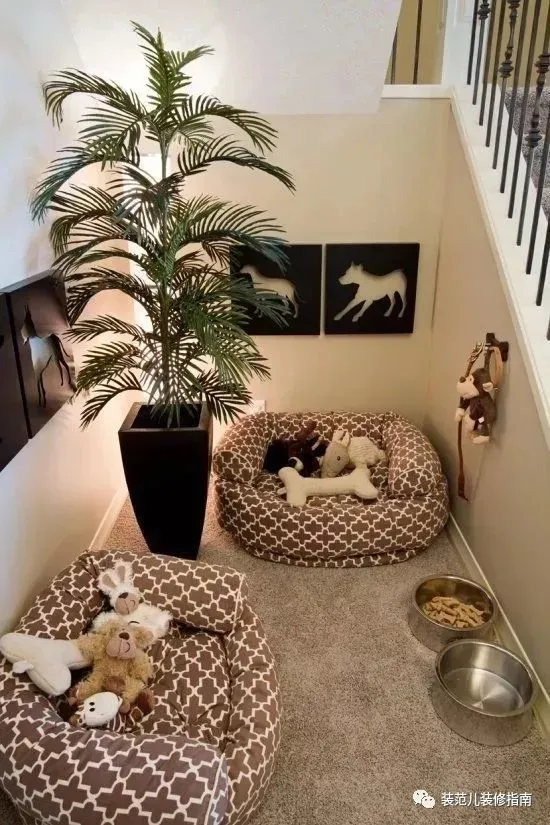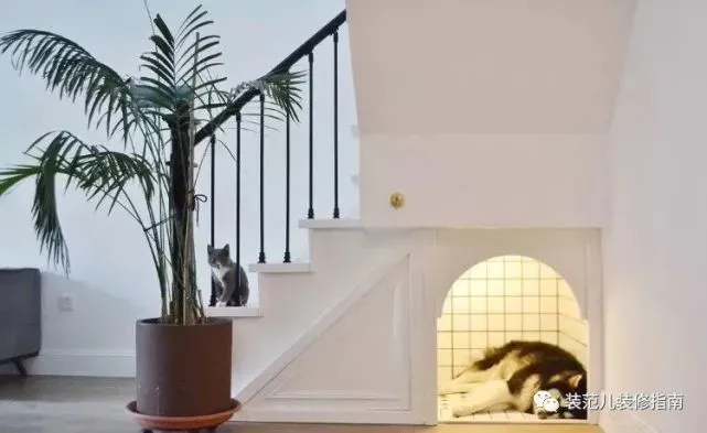 既然这些小可爱们是我们的家人,我们就应该像对待家人一样,在装修的时候为他们规划出舒适的居住空间。从宠物的生活习性考虑家的规划,把家变成一个人宠共乐的居所。 那么如何做到呢? 关键就在于:人宠区分。 NO.01 给它们自己的地盘 家里有喵和汪,整个屋子都容易成为他们的乐园,严重侵占了人的生活空间,有的时候还会干扰人的正常活动。