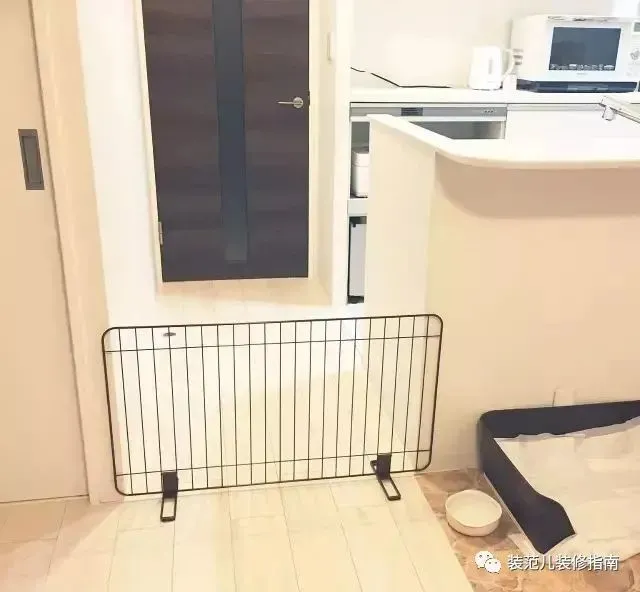 NO.03 怕它们闯祸? 用隔断划出禁止区 家里有汪星人、喵星人最担心的事就是它们闯祸。 其中厨房是事故的重灾区,制作美食的香气会吸引他们前来,打饭垃圾桶或是被热水烫伤都很危险。 所以在厨房门口家装安全门是最好的选择,在装修的时候就规划好。