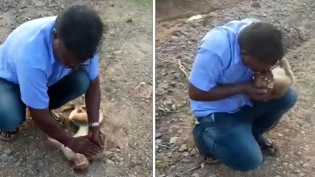 男子对被野狗袭击的猴子人工呼吸急救 兽医担心其感染狂犬病 据英国媒体《每日星报》12月13日报道,印度泰米尔纳德邦一只猴子被野狗袭击后昏迷,一位好心男子嘴对嘴人工呼吸将它救了过来。 12月9日,这只8个月大的猕猴被一群野狗袭击昏迷,名叫M·普拉布(M Prabhu)的男子对它展开急救。视频中,他按压猴子的胸部,甚至嘴对嘴人工呼吸,经过几分钟的急救,猴子似乎恢复了意识。