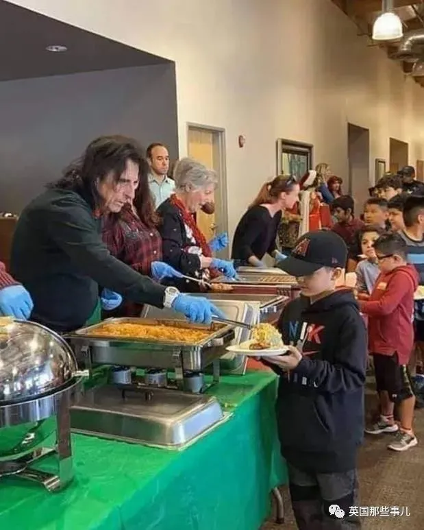 每年圣诞节,摇滚歌手Alice Cooper先生都会在他的餐厅,给数百名有需要的孩子提供一顿免费大餐。