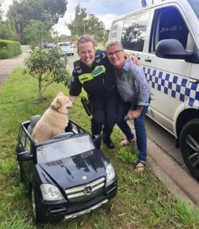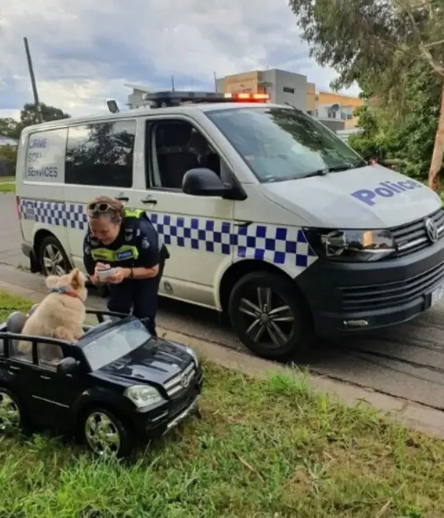 ▲日前维多利亚两名警员正在值勤,却在路上发现一个不太寻常的场景,只见一只狗狗坐在一辆小车里,慢慢地开过来! 警方觉得不寻常,于是上前探查。事后警局在网上公开表示狗狗的罪行:这只狗狗因为太可爱而影响其他人驾驶,因此我们的警员在现场将它拦下,当时它正开心地要和新车一起去兜风。