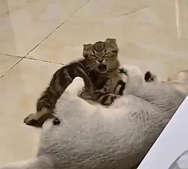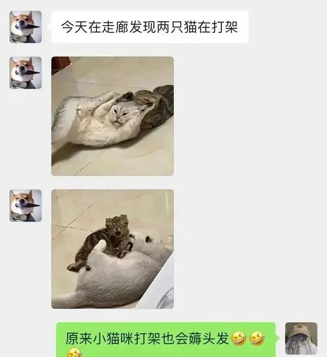 ▲住手!!小猫咪打架,不兴薅头发啊!喵星人是出了名的脾气爆,能动手就尽量不喵喵,但我是真的不知道。 猫咪打架现在路子都这么野了?都上爪薅头发了?