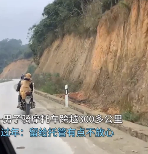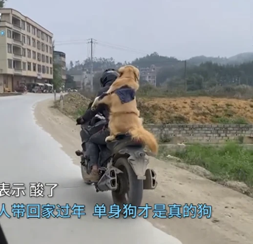 但是男子却不愿意,他觉得将金毛交给自己并不熟悉的宠物店是很不放心的,他担心金毛吃不好,毕竟宠物寄养出过很多问题。 男子被这个问题也困扰了很久,最终决定带金毛一起回家过年。 不过又有新的问题了,自己距离家300多公里,坐高铁肯定是最方便的,但是高铁又不能带宠物,如果托运狗狗,花费也很多,在几番纠结之下,男子想了一个办法:决定骑摩托带狗狗回家。