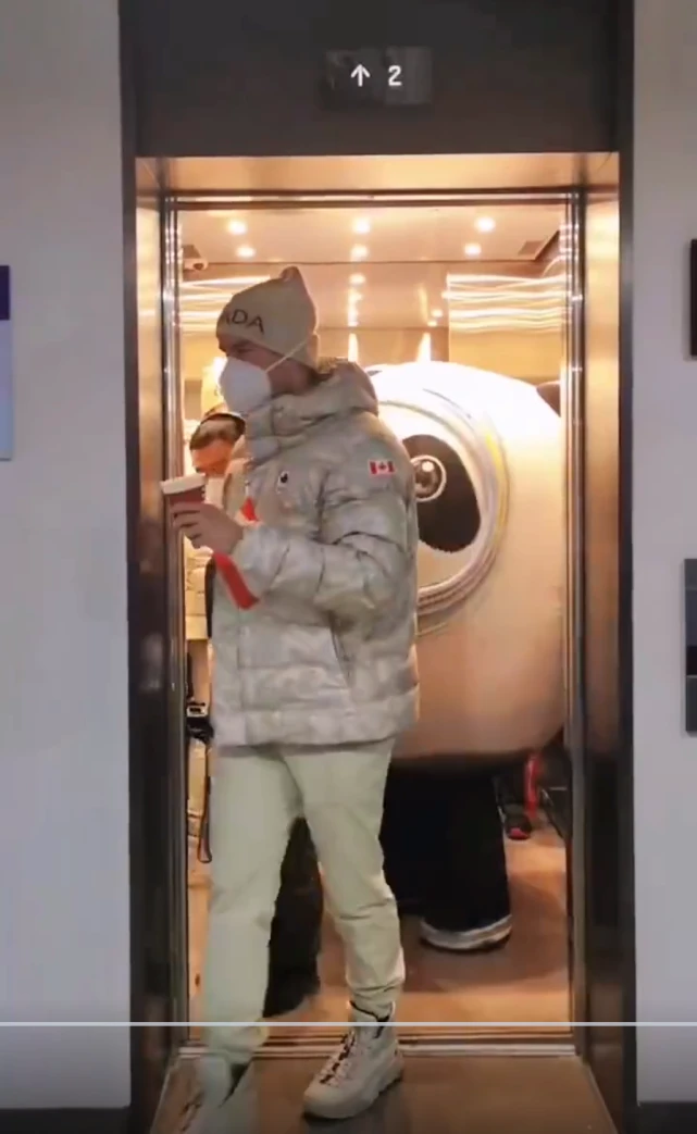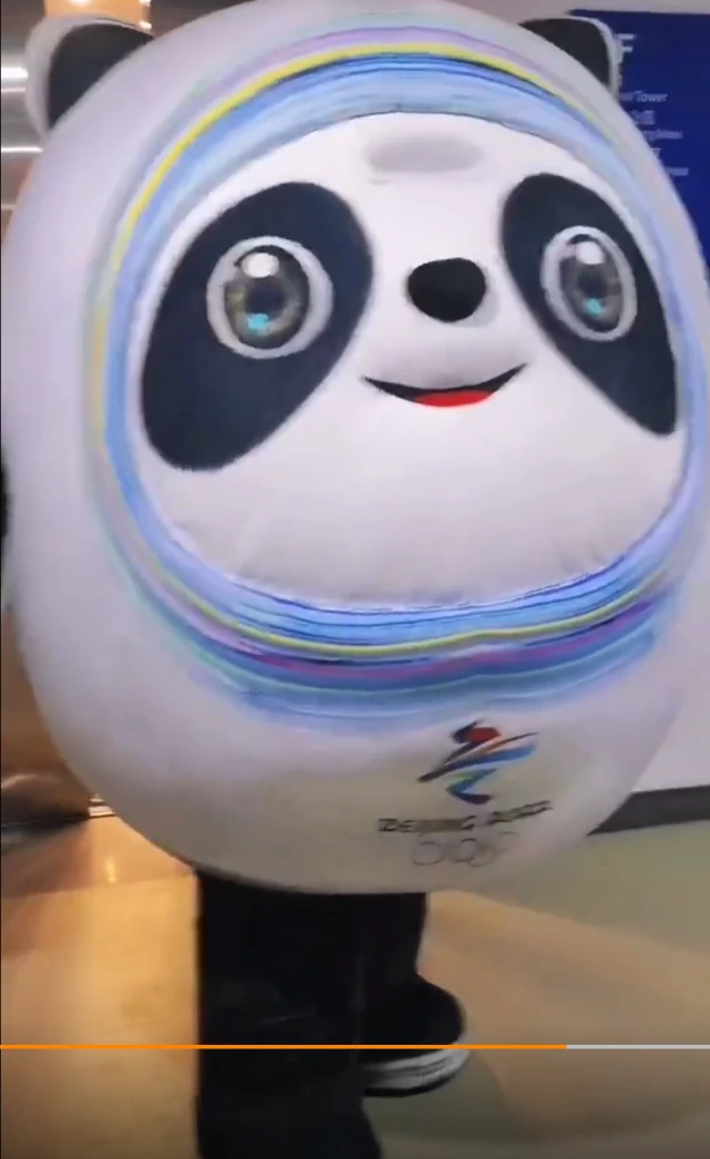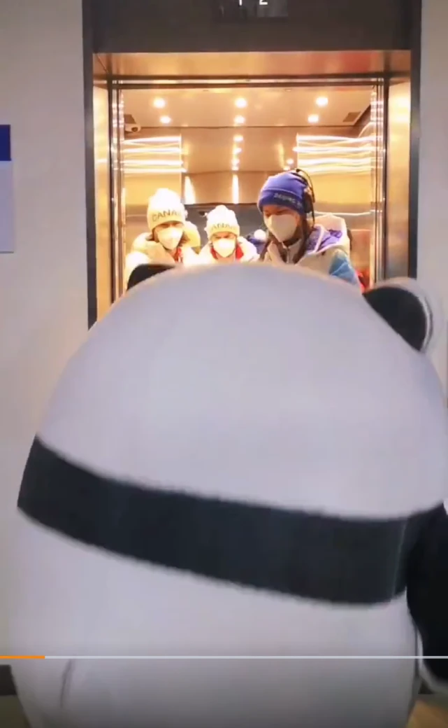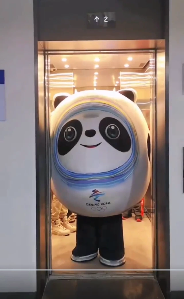 2月11日,北京延庆国家雪车雪橇中心内,一位网友拍下了冰墩墩从电梯走出时摔了一个屁墩的画面。 视频中,一个加拿大运动员首先走出了电梯,后面就是冰墩墩。