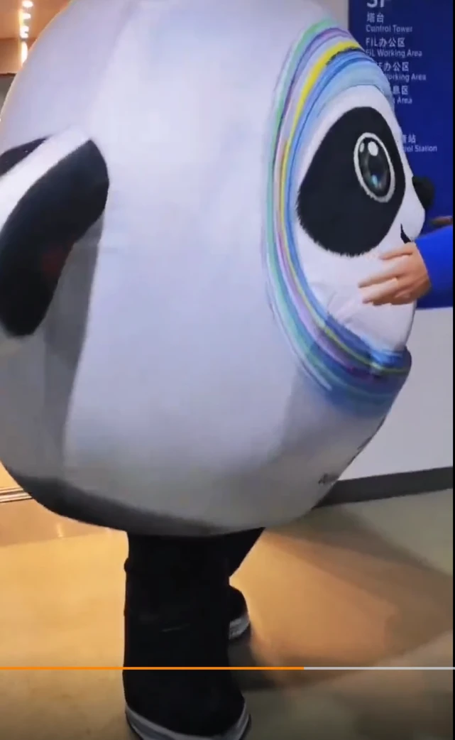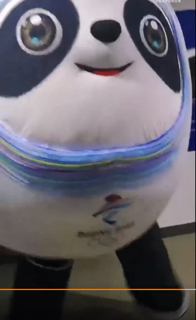有趣的是,冰墩墩还故意双脚腾空而起,跳了一下,证明自己依然是一只健健康康的冰墩墩。
