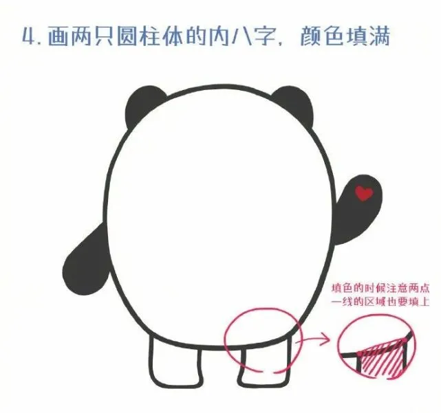 4、画两只圆柱体的内八字,颜色填满,如图所示。