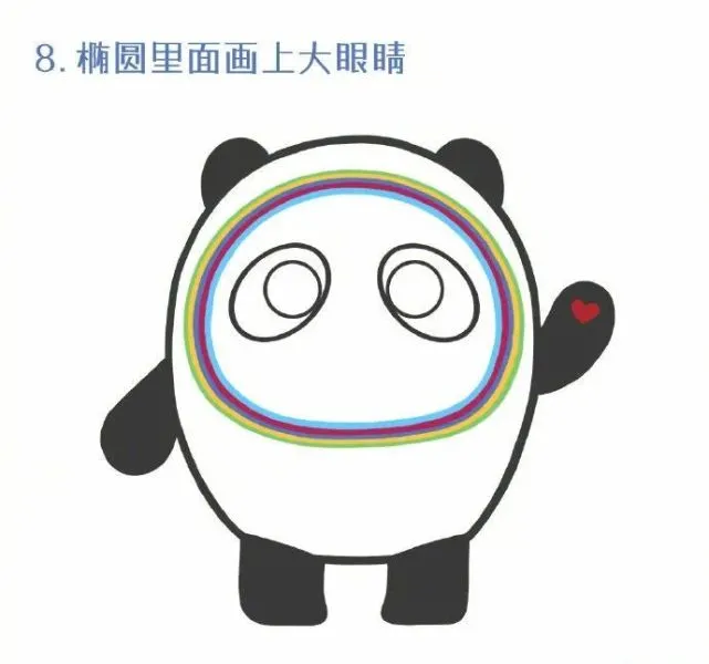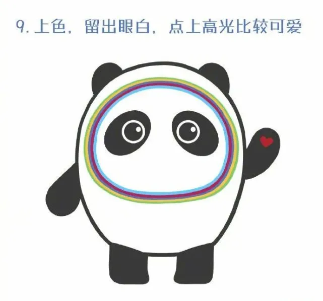 9、最后上色,留出眼白,点上高光比较可爱,这样一幅自己手绘的冰墩墩图案就大功告成了。