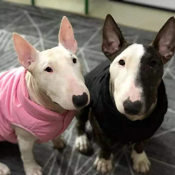牛头梗 牛头梗是很怕冷的狗狗,因为它毛发太短了,无法抵御寒风,天气太冷它很容易就被冻得皮肤发红,是非常难受的。 每年冬天,铲屎官都要给牛头梗及时添衣,避免它受冻出现皮肤问题。