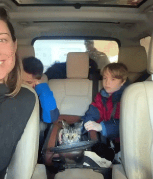这可吓坏了俩个小主人,他们第一时间就先护住了座位中间的小猫咪,生怕被狗狗踩坏了!