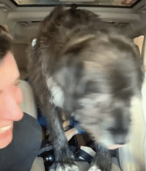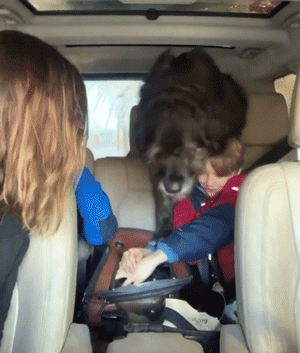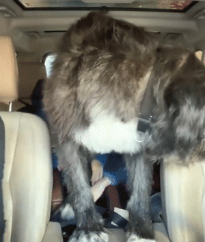 而Legit却丝毫不觉得有什么不对的,直接就踩着后座的小主人,爬过车厢找前排妈妈撒娇...
