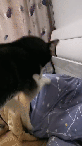 铲屎官周末想多睡一会,结果狗子上来就一顿狂踹!