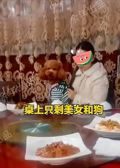 尴尬万分的酒席 据参与者称,这场喜宴规模不大,新人只是朴素的村民,一家人都老实巴交。 这名女子不知道是哪门子亲戚,来得并不早,抱着一条穿着衣服的小狗,随便选了个桌子就坐下了。 由于女子始终把狗抱在怀里,跟狗狗聊个不停,这个桌子原来坐着的几个人,分别借机开溜,躲到了别的桌。 一时间这张桌子,只剩了美女和她的狗。