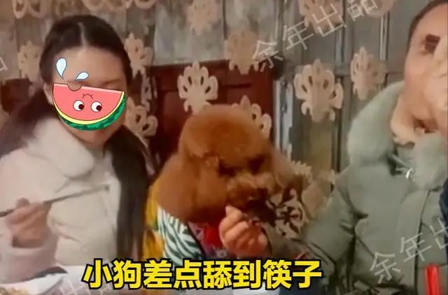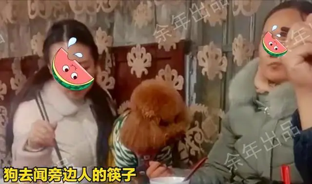 旁边吃席的女子,无奈,只能尽量侧身,让筷子离狗远点。 谁知她一个不注意,狗就把鼻子伸到了她的筷子边上,还试图去舔。 一场大席下来,这一桌的人吃得都不痛快,只有带狗来的美女,一脸司空见惯的表情,毫不在意大家的反感。