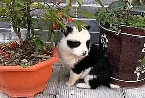 狗狗瞧见主人来给自己喂食后,很兴奋,不停地朝着他吠叫,似乎想把这个好消息分享给他。 小狗刚出生,模样并没区别,考虑到就只生了一只,处理小狗上,主人也比较轻松,等狗狗断奶后,可以送给周围邻居饲养。 让主人感到意外的是,一个月后,小狗毛发长齐全了,竟然跟国宝大熊猫撞型了。小狗毛发只有白色跟黑色,且分布区域跟大熊猫很像,特别是那一对黑眼圈,若是把小狗放在大熊猫中,没注意看还真分辨不出来。