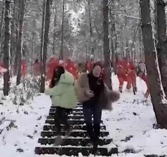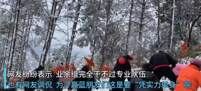 只见消防员小哥哥们开始了一顿猛攻,拿起雪就扔,那气势根本干不过。双方谁也不让谁,你扔我我扔你。这个画面可以说是业余组完全干不过专业队伍了,消防员小哥哥们那真的是凭实力单身啊。