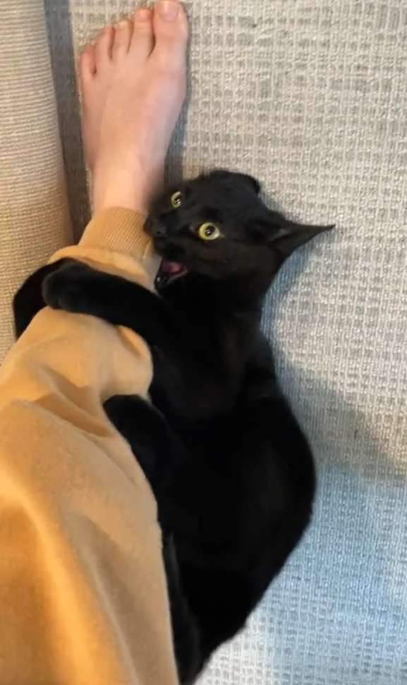 by TT@lcxiiiii_1999 02 这只黑猫最迷恋铲屎官的臭脚,走哪儿跟哪儿,天天抱着铲屎官的脚啃! 哼,左边脚是我的,快给我啃一口!