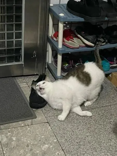 即使我们能明白猫咪喜欢闻铲屎官臭鞋、臭脚,腋下的原因,还是不能完全解释它们的一些迷惑行为。 比如一些特别的猫咪,喜欢蹭邻居家的鞋子……