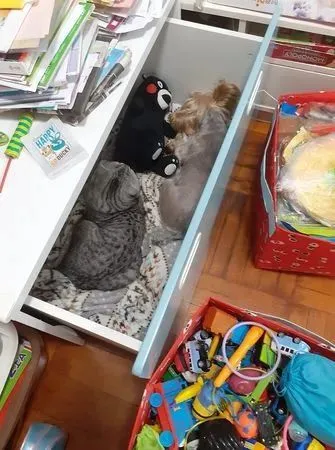 饭团和紫菜兄弟情深。 今年6岁大的饭团超级可爱,从小就和约克夏紫菜一起长大,紫菜可以说是被猫带大的狗狗,许多动作都逐渐猫化,它们连睡觉时也会同时举手手+翻肚肚,兄弟俩幼时会打架,现在感情十分要好。