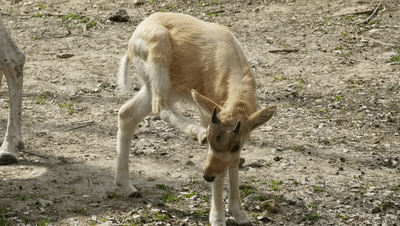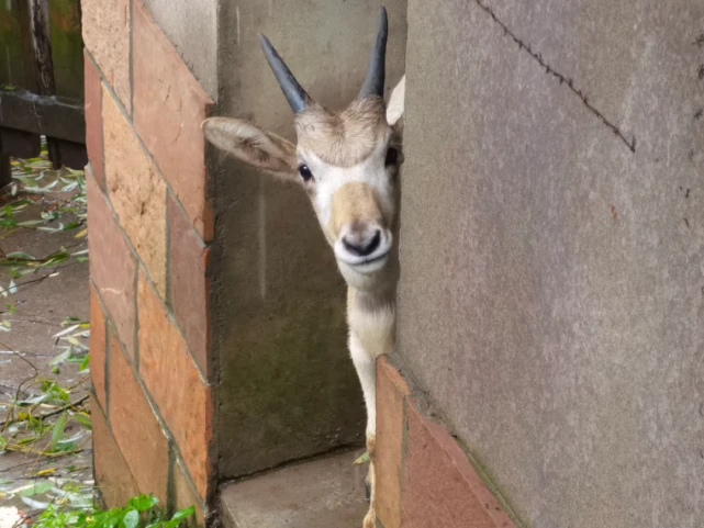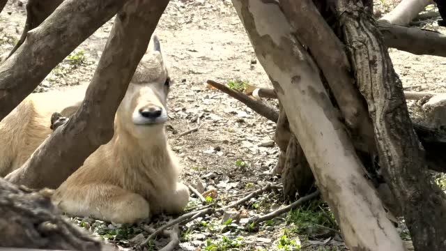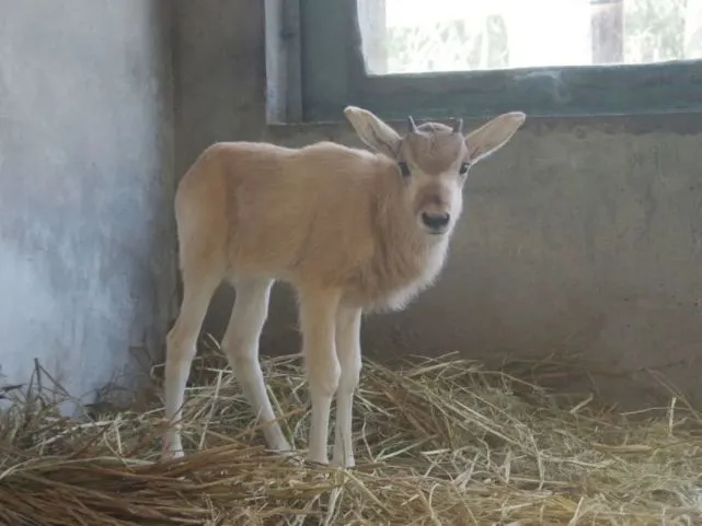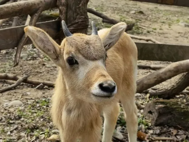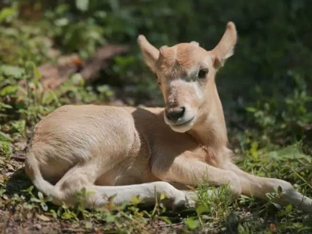旋角羚幼崽 天气转暖,阳光正好,微风不燥,刚出生一个月的旋角羚幼崽开始出来晒太阳啦。