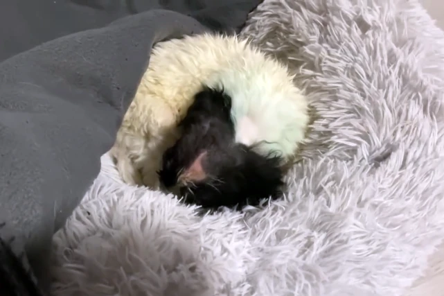 有人陪伴的时候,狗狗的精神状态还算不错,但救助站有很多狗狗需要照顾,无法安排专人时时刻刻陪着它。 无人理睬的时候,狗狗只能蜷缩成一团,不知所措地哀嚎着,没人知道,无声的黑暗世界,究竟有多可怕! 狗狗有了新朋友 恰好这时,救助站来了一只流浪小猫,两个同命相连的小家伙,成了无比亲密的朋友,每当狗狗痛苦无助时,小猫都会陪在它身边。