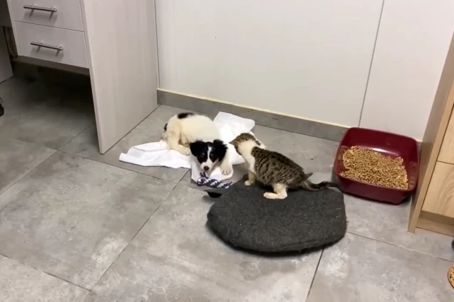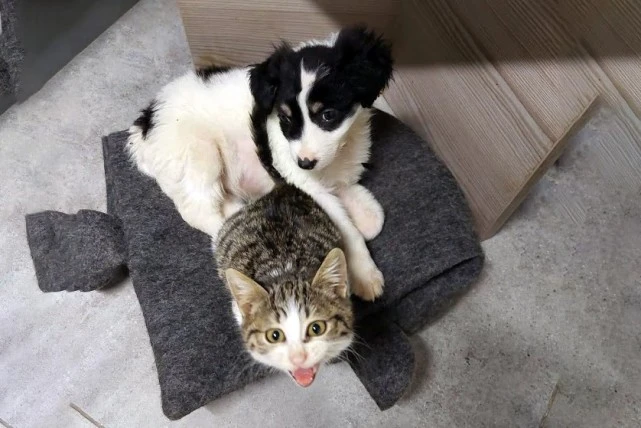 不过,如今的它,至少可以独自吃饭、睡觉、上厕所了!这意味着,在不久的将来,它或许会被好心人收养,拥有一个温暖的家。 狗狗和猫咪一同被收养 本以为毛孩子,会在救助站等上很长时间,才会被人带回家,没想倒好消息来得如此之快,一位女士和朋友,来救助站看望流浪动物时,第一眼就相中了这个小家伙。