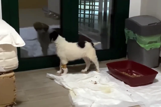 那天临睡前,工作人员照例观察狗狗的情况,发现它的眼神不经意扫了窗户一眼,之后身体便停住了,在玻璃窗前停留了好几秒。 工作人员顿时欣喜若狂,因为玻璃上倒映出了汪星人的影子,莫非狗狗能看见了?