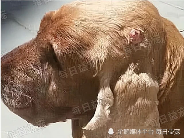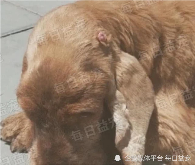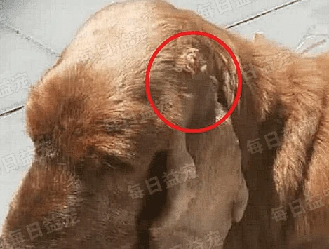 几天前,网友下班回到家的时候,狗狗依旧迎面扑上来,热情地欢迎主人,这个时候,大家都会习惯性地抚摸狗狗的脑袋,或者以大大的拥抱回应。 在和狗狗嬉戏的时候,网友不小心摸到了一个奇怪的东西,网友担心狗狗,立刻喝令它停下来,然后仔细检查了一下,在金毛脑袋侧面,有一颗类似于粉红花朵的肉球,不知道是什么东西。