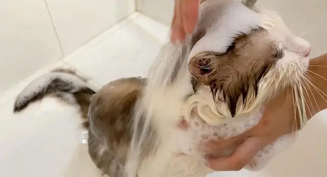 猫咪的眼睛,耳朵和鼻子都很敏感,一旦进水了或者有猫咪洗澡用的沐浴露进去,都会导致猫咪不舒服,引起猫咪的剧烈反抗。 当你给猫咪身上均匀涂抹专用的沐浴露后,可以一点点揉搓猫咪的身上,直到猫咪身上流下来的水不脏,接着给猫咪冲洗干净就好。 如何判断是否给猫咪冲洗干净了身上? 将猫咪放在盆里,如果猫咪的毛发能够在水中漂浮起来,说明猫咪身上已经洗干净了。