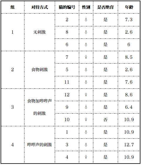 图自:猫研所 实验人员将这些入选的猫咪分别编号,TA们最终分成了如下4组: