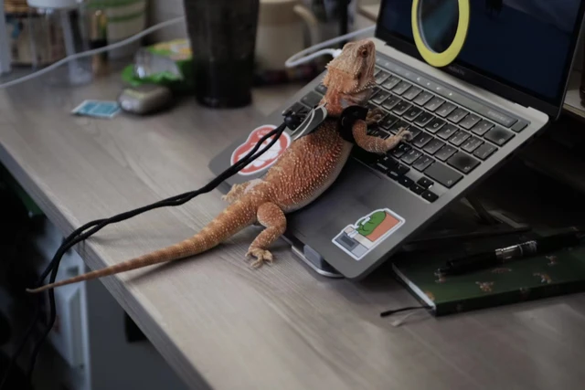 图|桃桃的巨型安哥拉兔 宠物之间的打架也是个绕不过的问题。桃桃的兔子一碰到同类就炸毛。有天,它碰到一只安哥拉兔,见面就咬掉了人家屁股上的一撮毛,紧接着双方扭打在一起。李子团的哈士奇也对同物种的狗分外敏感,经常互相骑对方,谁也不服谁。偶尔打得太凶,李子团必须出面将他们拉开,而更多时候,都是任由它们宠物自己打交道。 3月11日这天,南方天气回暖,Carrie特地步行200多米回家,把怕冷的蜥蜴带了出来—这是她第一次带宠上班。因为对猫毛过敏,同时怕狗,Carrie一直没养过宠物。一次契机,Carrie发现了蜥蜴这种异宠没有皮毛,不用多费心思,就养了一只。 Carrie预想过同事的反应,果不其然,在她把蜥蜴带去工位之后,引来了很多同事的惊呼。有女同事看清了她肩上拴着绳子的蜥蜴后“啊”了一声,下意识往后退了一步。再观察了会儿后,女同事也凑上来,对一动不动的蜥蜴感到好奇。 Carrie理解那种本能的害怕,就像她看见狗会条件反射地避开一样。所以她想着,如果之后还要带蜥蜴,就把它装在盒子里,别让害怕的人看见。