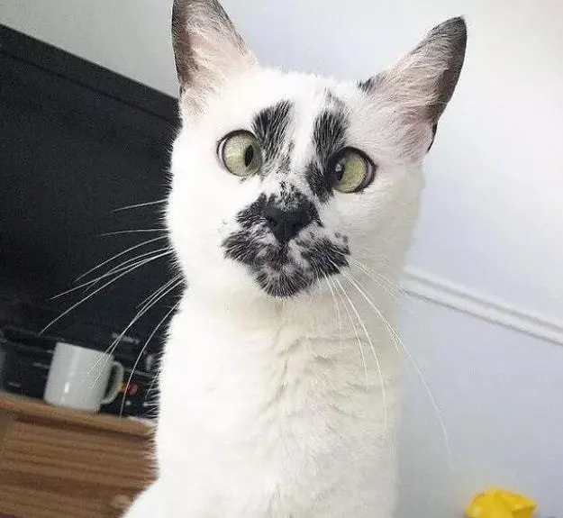 -3颜值并不稳定 众所周知,奶牛猫,就是身上毛发颜色为黑白配色的猫咪。 颜值高的奶牛猫,像那可口的奥利奥一样,看上去很顺眼。 而有些奶牛猫,真的低到离谱。 它浑身都是白色的,只有脸上不均匀的分布着几块黑毛。 看上去就像是一只白猫,被碳烧焦了面部一样,让人很难爱起来。 -4神经兮兮的 大部分猫咪都有些脑回路不正常。 喜欢突然从某处跑出来“袭击”铲屎官。