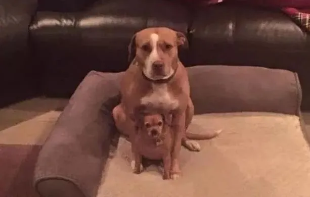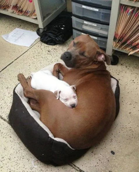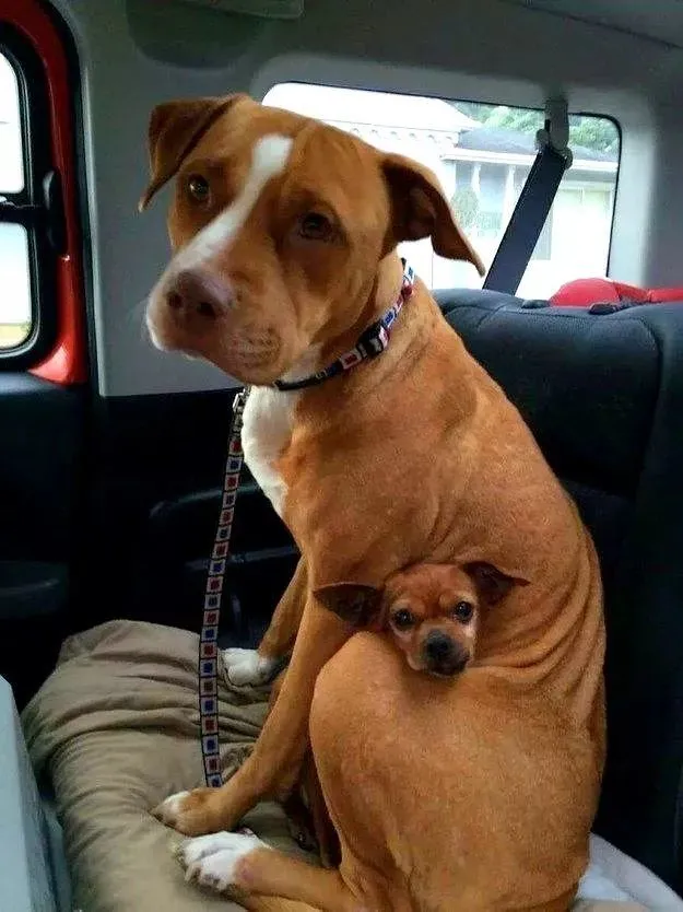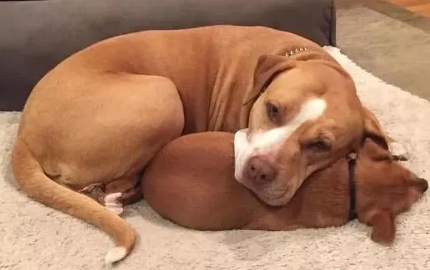 没有人收养它们的原因很简单,大的那只狗狗总是把小狗圈在自己怀里。 大多数人一眼看上去还以为它们是母子或兄弟姐妹,很少有人会一下子领养两只。 虽然它们毛色相近,但其实仔细一看,它们一只是比特犬,一只是吉娃娃。 只不过它们是同一天被送到收容所里来的。 据工作人员介绍,它们之前就在一起流浪,不知道彼此支撑着走过了多少磨难,吉娃娃的脸已经发白了...