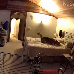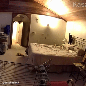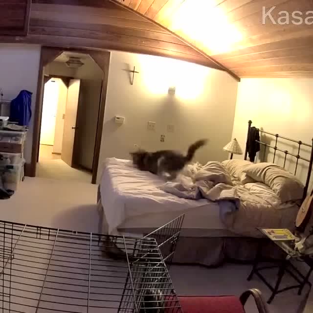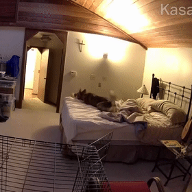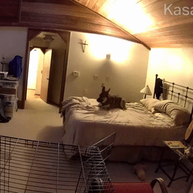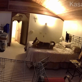 一铲屎官很好奇,为啥自己就冲个咖啡的功夫,原本铺好的床铺就变得乱糟糟的? 于是她就装了个监控,想看看到底发生了啥—— 果不其然,看到屋里没人,不安分的狗子就跳上床,开始各种旋转跳跃...