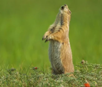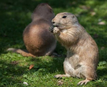 黑尾土拨鼠体型小而圆胖,属于松鼠。成年公鼠能长到36-43cm高,体重在0.5到1.4kg间。有意思的是,土拨鼠披的那件“毛大衣”,能在普通棕色与黑、灰、白间变化。而那条黑色的尾巴,是其身份的最典型特征。