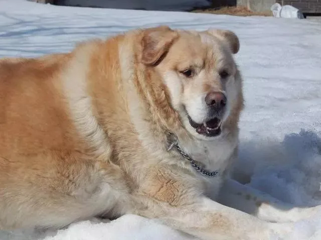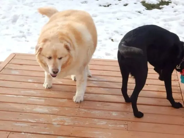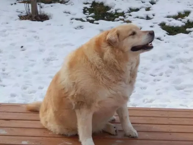 正常的金毛犬体重一般在60斤左右,而Kai的体重足足达到了160斤,趴下来简直就是一滩肥肉,唉!明明是条狗,你为何活成了猪。