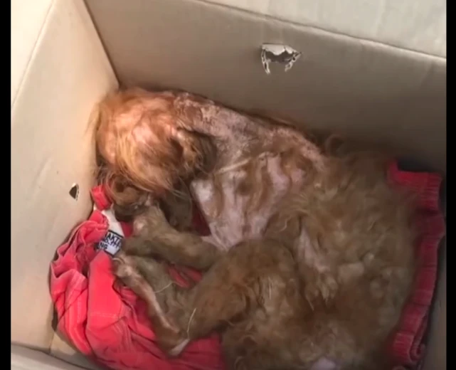这只狗狗叫苏玛,当你第一眼看到它的时候,都怀疑它是不是一只狗狗。它就躺在一栋楼墙角处的纸箱子里,稀疏的毛发,瘦得只剩皮包骨,身上还发出阵阵的恶臭味。很多路人看了后,都是掐着鼻子走开的,更别说是走近帮助它了!和很多流浪狗一样,苏玛是被主人所抛弃的,而它的主人之前正是住在这栋楼上的,所以它哪也不去,就待在这里等着主人能够回来。